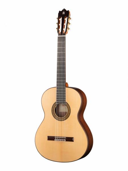 Az Alhambra 4PA nem cédrus (mint a 4P sorozat), hanem lucfenyő fedlappal készül – ez a világosabb tónusú fa eltérő karaktert és hangszínt kínál. A hang lecsengése hosszabb, így a 4PA különösen jól szól száraz akusztikájú helyiségekben. A lucfenyő tetejű gitárok olyanok, mint a nemes borok: minél régebbiek, annál gazdagabbá válik a hangjuk. Míg a cédrus stabil, állandó karaktert nyújt, a lucfenyő hangja az évek során folyamatosan fejlődik és mélyül.