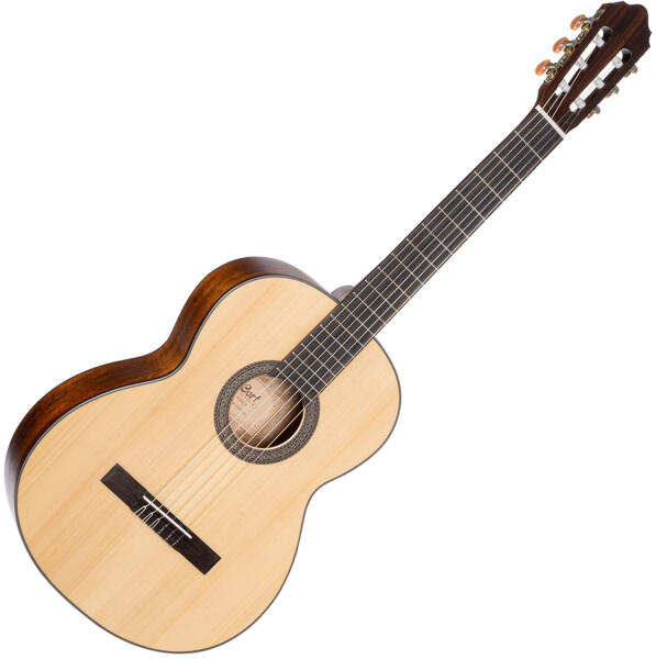 Termékleírás A Cort AC200-OP klasszikus gitár a tradicionális stílusú AC modellek modern változata, melyet a kiváló rezonancia és autentikus hangzás jegyében újraterveztek. A hangszer mély és telt hangja a gondosan kiválasztott faanyagok - tömör fenyő, mahagóni hát- és oldallapok, valamint ovangkol fogólap - tökéletes kombinációjának köszönhető. Az AC200 modellt a tanulók számára is ideálisan tervezték, mivel a játékhoz nem szükséges a tökéletes precizitás, így könnyen elsajátítható. A klasszikus testforma és az ovangkol híd garantálja a játékosok számára a kiváló élményt, míg a Savarez húrok élénk és gazdag hangzást biztosítanak. Ha autentikus klasszikus gitárra vágyik, amely támogatja a fejlődését és magabiztos játékélményt nyújt, a Cort AC200-OP a tökéletes választás. Specifikációk