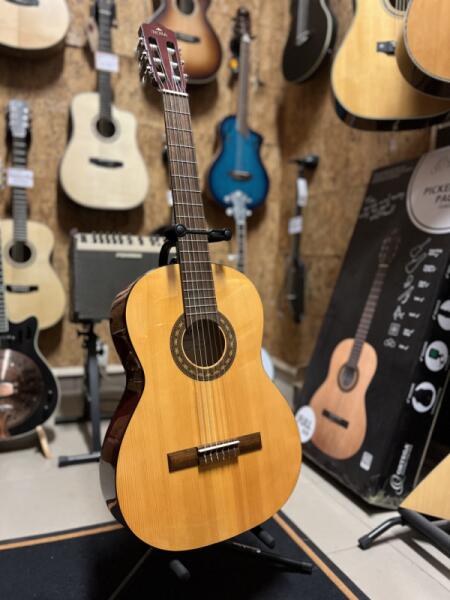 TermékleírásA HORA Laura 4/4 egy kiváló minőségű nylon húros klasszikus gitár, amely ideális választás kezdő és haladó zenészek számára egyaránt. A 4/4-es méretének köszönhetően kényelmesen játszható, és megfelelő hangzást biztosít a klasszikus zeneelmélet gyakorlásához. A gitár tömör lucfenyő fedlappal rendelkezik, amely gazdag és meleg hangzást biztosít. A rétegelt hársfa hát és oldalak együttese tovább fokozza a hangzás tisztaságát, miközben a juharfa nyak és keményfa fogólap garantálja a tartósságot és a kényelmet a játék során. A HORA Laura 4/4 klasszikus gitár kifejezetten azoknak készült, akik értékelik a tradicionális hangszeres játékot. Legyen szó örömzene szórakozásról otthon, vagy komolyabb zenélésről, ez a gitár ideális társ a zenélésben. Az elegáns dizájn és a gondosan megválasztott anyagok nemcsak a hangminőséget, hanem a megjelenést is emelik. Az akusztikus gitárok szerelmesei számára ez a hangszer biztosan elnyeri tetszésüket. Válaszd a HORA Laurát, és tapasztald meg a klasszikus gitárzene szépségét és kényelmét egy minőségi hangszeren!GyártóA Hora egy elismert hangszer gyártó, amely híres megbízható minőségéről és innovatív megoldásairól. A cég elkötelezett a zene iránt, és termékeik megalkotásakor a legjobb anyagokat és technológiákat használják. Termékeik között találhatók gazdag hangzású klasszikus gitárok, amelyek a legtöbb zenei stílushoz tökéletesen illeszkednek. A Hora folyamatosan úgy fejleszti hangszerkínálatát, hogy a zenészek mindig a legjobb élményben részesülhessenek.